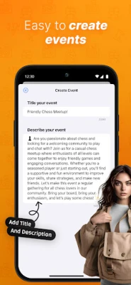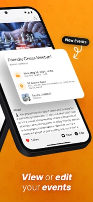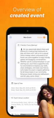 Chat within events to discuss plans, connect with participants, and get organized. View profiles to see what events others have attended or organized, building a social network based on shared interests.