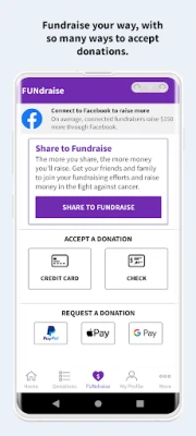 The American Cancer Society FUNdraising app puts the FUN in fundraising! It enables Relay For Life© and Making Strides Against Breast Cancer participants to easily register for events and accept donations on-the-go.