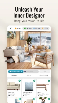 Explore hundreds of house design options with countless furniture and home decor brands to choose from, and even more added daily. Express yourself as a true interior designer with trends and top brands like Jonathan Adler and West Elm. Design Home makes any dream home possible.