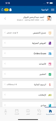 يرجى ملاحظة: إذا كان لديك العديد من الطلاب الذين يدرسون في مدرستنا وكان للسجلات المدرسية نفس رقم الجوال لجميع طلابك ، فيمكنك تبديل ملف تعريف الطالب في التطبيق من خلال النقر على اسم الطالب من قائمة شريط التمرير الأيسر ثم تبديل الملف الشخصي للطالب.