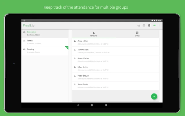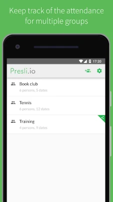 You're managing some group of persons and wants to manage the attendance? You don't need those paper lists or spreadsheets any more. Presli.io is made just for you.