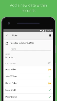 - Shared Groups: Invite other users to manage a group with you. They will have access to the specific group and can add appointments, add persons and manage the attendance.